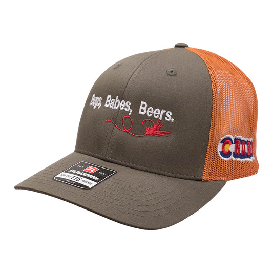 COLORADO FLY FISHING TROUT HAT BUGS BABES BEERS - LO PRO TRUCKER